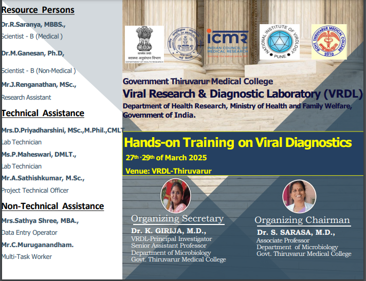The VRDL is a central sector (CS) scheme started in Department of Microbiology, Government Thiruvarur Medical College ,Thiruvarur, Tamilnadu in the year 2019.