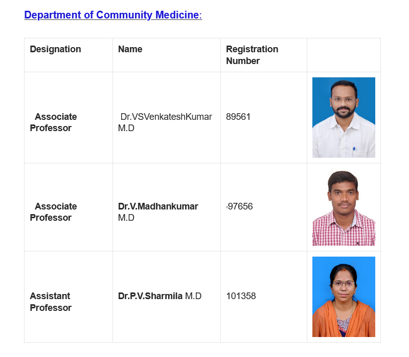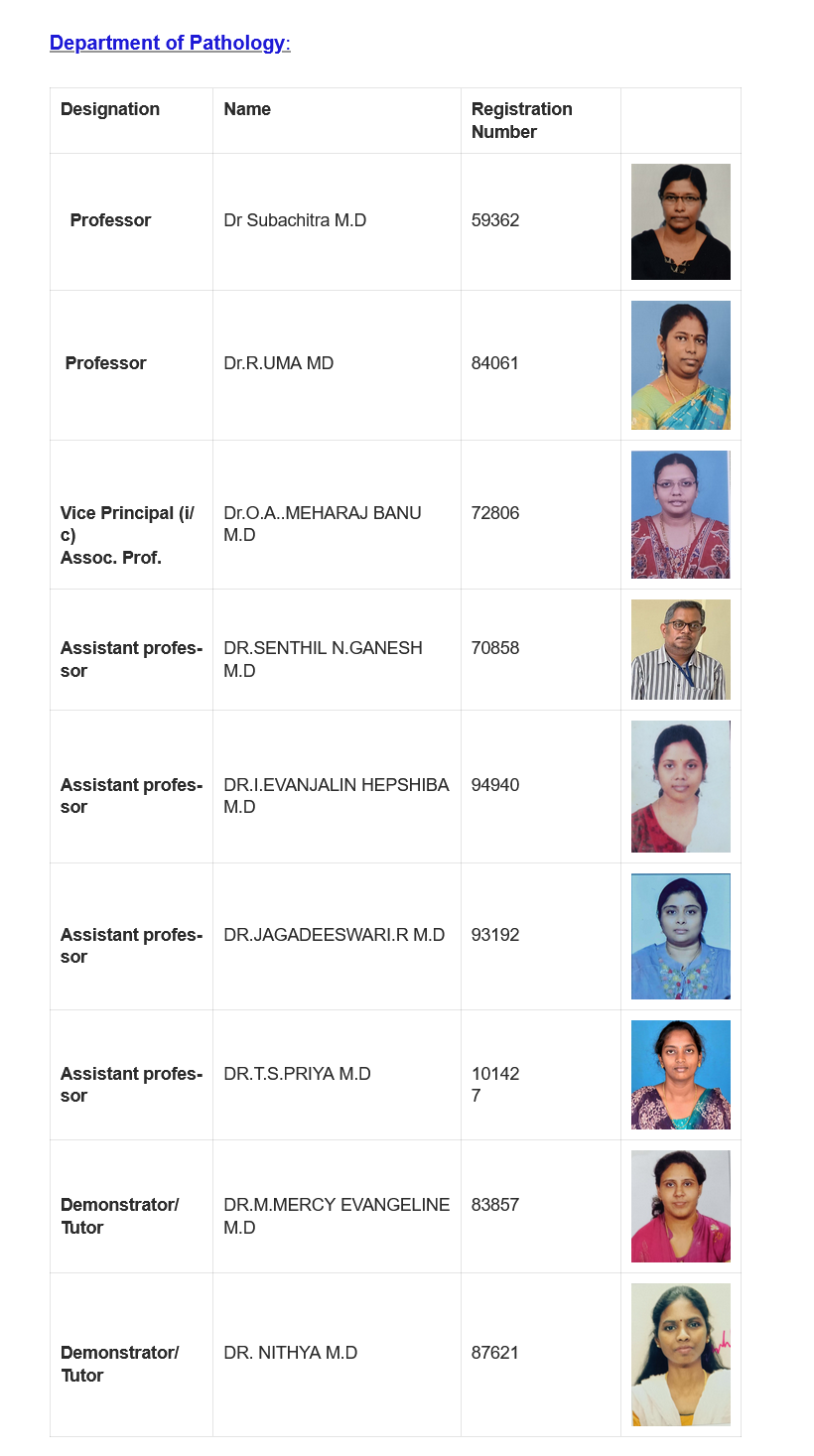Assistant Professor | Dr. R. Preetha M.D., | 75329 | |