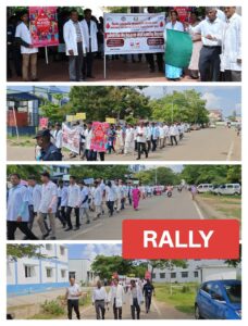 District Blindness Control Society, Thiruvarur and Department of Ophthalmology conducted Eye Donation Awareness Rally at GTMC. The rally was inaugurated by Thiruvarur District Collector in the presence of Dean, GTMC. Medical Superintendent, Vice Principal, Resident Medical Officer, ARMO, Professors, Associate Professors, Faculties of various departments, Matrons, Nursing Staffs, Undergraduate Medical students and Paramedical students participated in the Rally. Slogans about Eye donation was chanted during the Rally. Pamphlets about eye donation awareness was distributed to the public.